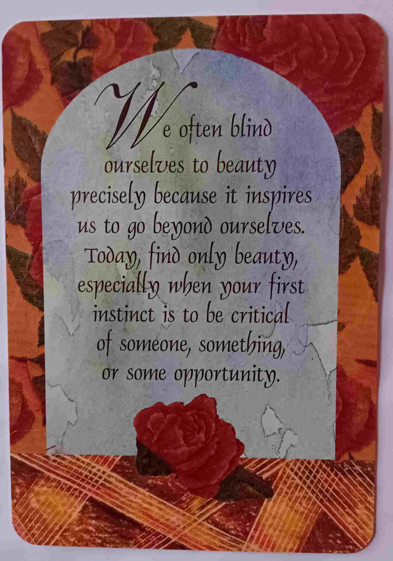 Usein sokaisemme itsemme kauneudelle juuri siksi, että se inspiroi meitä menemään itsemme ulkopuolelle. Tänään, löydä vain kauneutta, varsinkin kun ensimmäinen vaistosi on olla kriittinen jotakuta, jotakin tai jotakin tilaisuutta kohtaan.